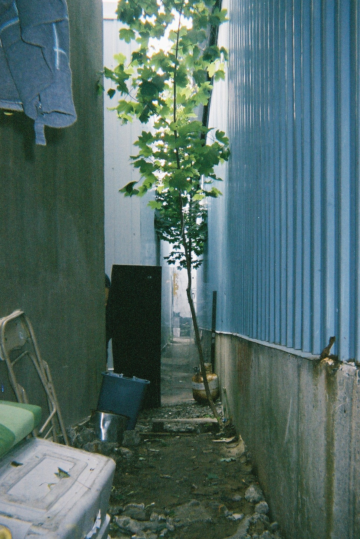 ''The siting of Hector’s tent offers a sheltered, enclosed area, with good sightlines, and two protected entrances. A chain-link fence to the rear of the tent defines a safe boundary; defense is only necessary from the other direction. Good neighbours are a key factor in siting an essential dwelling. Agreements can be struck with neighbouring businesses to provide protection during off hours in exchange for dwelling in an unseen interstitial space on the property.''